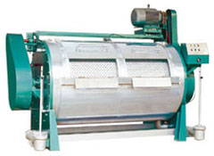 工業(yè)洗衣機(jī):直屬洗滌設(shè)備系列按容量大小分為:30kg、50kg、70kg、200kg、250kg、300kg等系列。該洗滌設(shè)備是滾筒型,內(nèi)、外殼采用優(yōu)質(zhì)不銹鋼制作而成,平整光滑、耐腐蝕、不損傷織物。該機(jī)由內(nèi)筒、外筒、電機(jī)、支撐總成、傳動(dòng)總成、電器總成組成。 結(jié)構(gòu)合理、安裝使用方便。工作原理:由頂置電機(jī)、三角膠帶、帶動(dòng)傳動(dòng)總成,使內(nèi)筒作正反轉(zhuǎn)運(yùn)轉(zhuǎn), 通過(guò)織物與織物、織物與內(nèi)筒壁的相互摩擦,達(dá)到洗滌效果。機(jī)器內(nèi)置過(guò)熱、過(guò)載裝置、定時(shí)裝置、正反轉(zhuǎn)控制裝置。外筒門設(shè)有安全裝置,若運(yùn)行中門被打開(kāi),機(jī)器立即停止運(yùn)轉(zhuǎn),確保該洗滌設(shè)備、操作人員的安全。